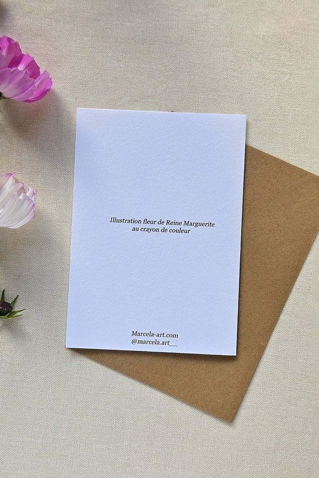 Carte au crayon de couleur - Fleur reine marguerite